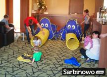 Jesteśmy wyróżniającym się obiektem dla rodzin z dziećmi, oferujemy duże pokoje, plac zabaw, małpi gaj z piłeczkami,jeździki, bawialnie, trampolina, zajęcia z Panią Animator, kino 3D. U nas dzieci się nie nudzą! Nowość Katamaran-Club - złap wiatr w żagle!!! Serwujemy śniadania w formie bufetu szwedzkiego. Codziennie min.4 rodzaje wędlin, sery żółte,twarogi, jajecznica, jajka na twardo, parówki, pomidory, ogórki, różne rodzaje płatków, dżemy, powidła, mleko, kawa, herbata, soki, różne rodzaje pieczywa... Dla dzieci polecamy mini bufet śniadaniowy - kaszki, płatki, zupki mleczne, twarożki. Wszystko w cenie, dzieci do 3 lat gratis